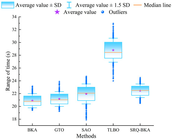Notably, both the original BKA and the proposed SRQ-BKA used the same number of function evaluations, as they adopted identical population sizes and iteration counts. This ensures a fair comparison because any observed performance improvement arises solely from the SRQ-BKA’s algorithmic enhancements rather than increased computational effort.