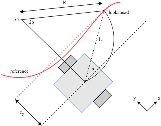 20] have attracted widespread attention in many fields including agricultural machinery, intelligent driving, and mobile robots because of their simple structure and easy implementation. The algorithm formulates control arcs based on specified look-ahead points to achieve path tracking. When dealing with road sections with high curvature or folded paths, it often encounters problems such as direction fluctuations and tracking jitter. In order to enhance the robustness of the PP algorithm, the researchers proposed an integrated fuzzy control mechanism [