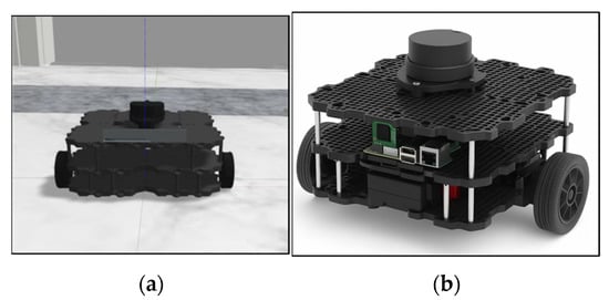 The algorithm comparison experiments were conducted on the Windows 11 (Microsoft Corporation, Redmond, WA, USA) operating system, while the system simulation experiments were performed on the Ubuntu 20.04 platform (Canonical Ltd., London, UK). The simulation utilized the TurtleBot3 Waffle Pi robot model (ROBOTIS, Seoul, Republic of Korea), as illustrated in