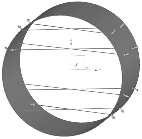 Deviations arising from three-dimensional coordinate measurement errors during geometric parameter acquisition are major contributors to the overall uncertainty in ultrasonic flow meter results. To evaluate the impact of such errors on parameter fitting accuracy, the Monte Carlo simulation method is frequently employed in uncertainty propagation analysis. This technique assumes that measurement errors in three-dimensional coordinates follow a known probability distribution. It then generates a large number of simulated data points randomly within a virtual model and repeatedly fits and statistically analyzes key geometric parameters—such as pipe radius and axial orientation—to estimate their uncertainty intervals [40]. Figure 5 presents a schematic diagram of cylindrical pipe fitting using measured spatial points, illustrating the process of deriving geometric parameters using spatial coordinate data.