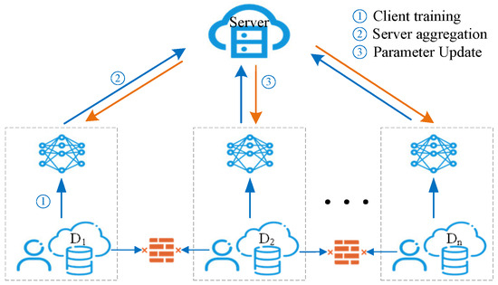 Figure 1. This approach effectively utilizes limited local data, enhancing generalization across heterogeneous scenarios. Through optimized aggregation algorithms, federated learning significantly mitigates data consistency issues, improving convergence stability and overall model performance in complex industrial environments. Additionally, federated learning inherently supports privacy preservation, as only model parameters or gradients, not the raw data, are shared among nodes. This mechanism satisfies privacy protection requirements imposed by regulatory bodies, effectively mitigating risks associated with sensitive information leakage.