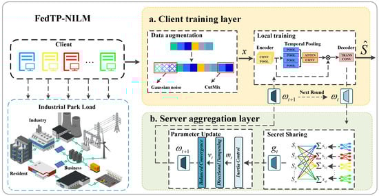 Client Training Layer. In this layer, the client executes the hybrid data augmentation strategy and trains the local model. On each client, the collected data is preprocessed and transformed into a time-series format suitable for training. The local model is trained using data associated with the client. FedTP-NILM employs privacy-enhancing mechanisms and secure aggregation protocols to prevent access to private data between clients. After local updates, clients upload model parameters to the server for weighted aggregation, triggering the next round of federated training.