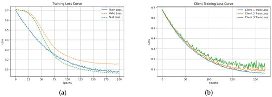 Figure 6b illustrates the training loss curves from multiple clients in the aggregated model. For both types of models trained, convergence can be achieved around epoch 200, and both the validation and test losses exhibit minimal variation. This consistent loss behavior suggests that that the model progressively reaches optimal performance during training.