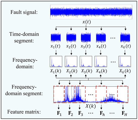 where , with being the number of sampling points per segment of the bearing-vibration signal, and , where denotes the total number of signal segments. Here, represents the nth sampling point of the gth signal segment.