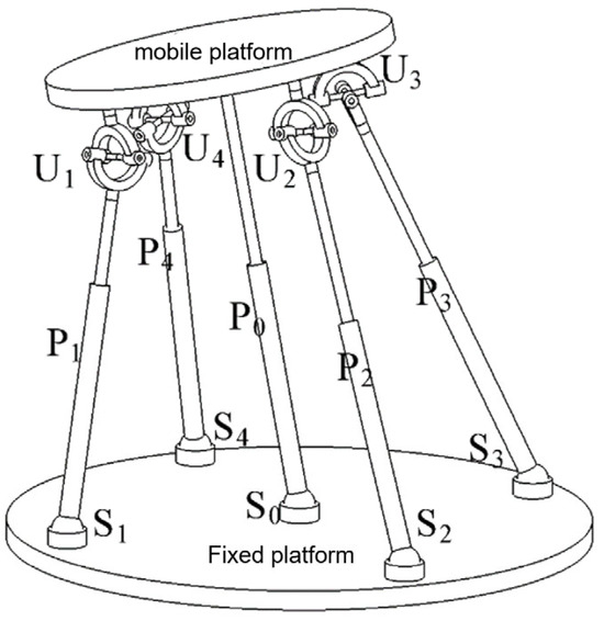 Schematic diagram of the 4-SPU/SP parallel mechanism with biomimetic configuration.