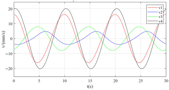 According to Equation (24), the linear velocity of the moving platform of the bionic parallel mechanism of the flexible exoskeleton for lumbar rehabilitation can be expressed by the independent variable parameters of the mechanism as
