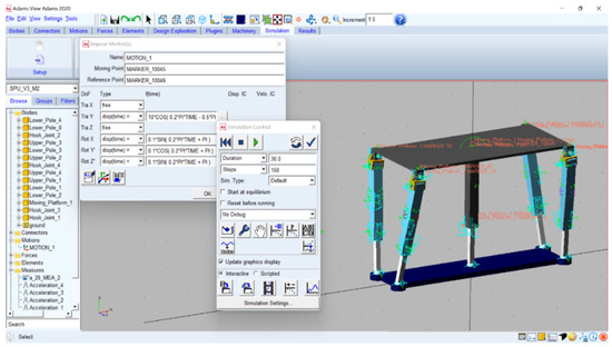 In terms of the flexible exoskeleton for lumbar rehabilitation, it is not only necessary to provide patients with stable lumbar decompression assistance but. more importantly, it must ensure patient safety. Therefore, real-time control of the thrust magnitude of the electric pushrod is of great significance. The flexible exoskeleton for lumbar rehabilitation uses inverse dynamics to solve the driving force by the electric pushrod based on the target position to be achieved and then controls the motor output according to the required force or torque to realize real-time control of the exoskeleton robot [27]. This essay will adopt the virtual work principle method to carry out dynamic modeling of the 4-SPU/SP bionic parallel mechanism of the flexible exoskeleton for lumbar rehabilitation and use MATLAB combined with ADAMS to simulate its dynamic model to verify its correctness.
