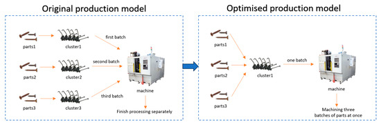 - The same production line processes up to 3 batches of material from the production cluster at the same time;