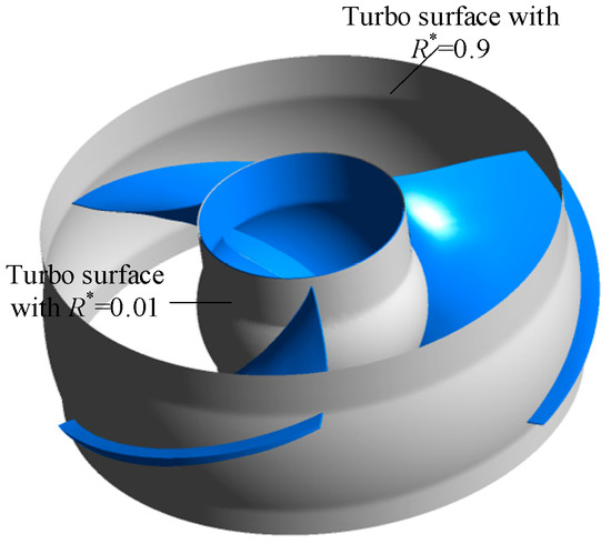 where S is the axial coordinate value for calculating the cross-section, Sin and Sout are the axial coordinate values for the inlet and outlet of the impeller.