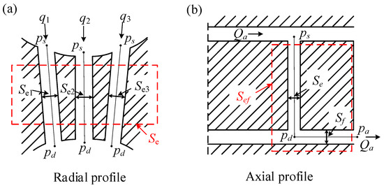 where ∂n denotes the direction of the normal of the symmetric boundary, and pd represents the restrictor outlet pressure. It should be emphasized here that in the boundaries pertinent to the second-order Reynolds equations, sp, ss, and sd represent the natural and enforced boundary conditions, respectively.