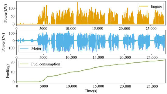 Here, vehicle speed and acceleration reflect driving conditions and are used to infer the total torque demand. Gear position and battery state of charge describe the drivetrain status and battery condition, respectively. The fuel consumption rate represents the engine’s fuel efficiency.