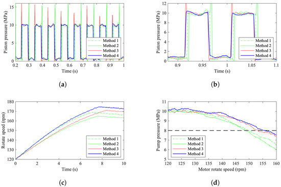 The experimental results are depicted in Figure 26. This demonstrates that distribution Method 4 attains the highest motor driving efficiency. Furthermore, it exhibits minimal pressure pulsation.