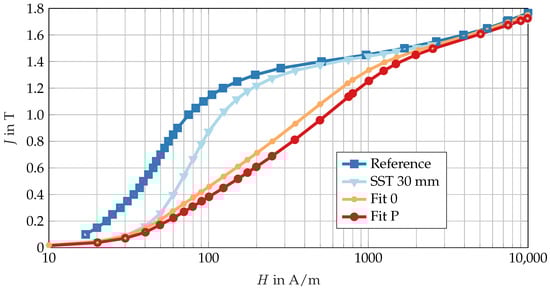 ). The manufacturing process has a negative impact on the magnetization characteristics of the electrical steel sheet. Due to the shift of the commutation curve to higher magnetic polarizations (see