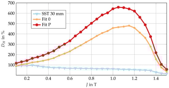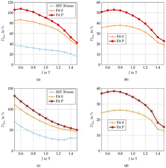 The substantial reduction in the hysteresis component and the pronounced increase in the excess component at Fit 0 and Fit P are particularly notable. This phenomenon can be attributed to the lower gradient of the specific loss curves when mathematically fitting the coefficients. As demonstrated in