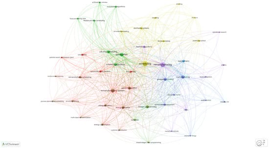 Network of co-occurring keywords related to remanufacturing scheduling (2005–2025).