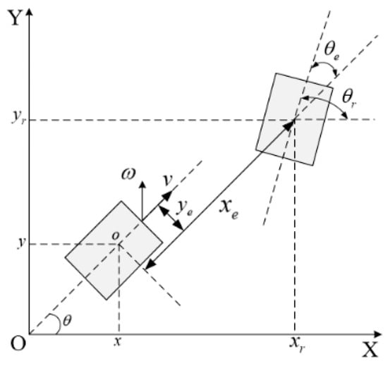 The trajectory tracking error of the wheeled mobile robot in the global coordinate system can be expressed as follows: