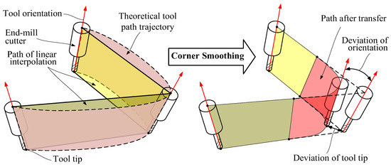 - Yang, J.; Yuen, A. An analytical local corner smoothing algorithm for five-axis CNC machining. Int. J. Mach. Tools Manuf. 2017, 123, 22–35. [Google Scholar] [CrossRef]