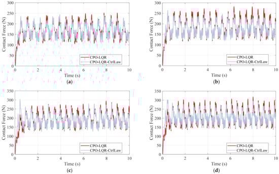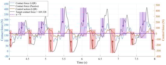 where denotes the target contact force under the current speed condition and is the increment value. should not be too large or too small; if it is too large, it may undermine the stability of the LQR controller, causing the control action to fail and the contact force to potentially diverge. If it is too small, it yields no additional effect and becomes indistinguishable from the baseline action. Based on experimental validation, we chose N.