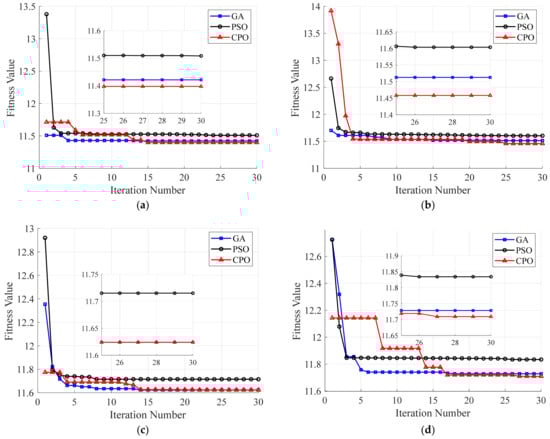 The CPO algorithm was proposed by Abdel-Basset et al. [] in 2024 as a swarm intelligence algorithm inspired by the defensive behavior of crowned porcupines. Comparative experiments on the CEC2017 benchmark show that CPO significantly outperforms various classical metaheuristic algorithms. Based on this, we employed CPO to optimize the -weight matrix of the LQR controller.
