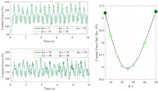 The standard deviation of the contact force is a key performance metric, as higher standard deviations reflect more extreme fluctuations. Ideally, this metric should be minimized. The acceptable range of the statistical contact force is calculated based on the standard deviation, which is defined as: