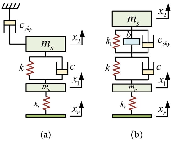 - Yang, X.; Zeng, S.; Liu, C.; Liu, X.; Wang, Z.; Yang, Y. Optimal design and performance evaluation of HMDV inertial suspension based on generalized skyhook control. Int. J. Struct. Stab. Dyn. 2025, 25, 2550069. [Google Scholar] [CrossRef]
