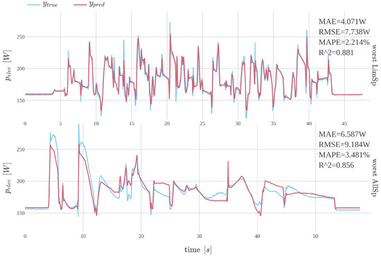The difference in performance is depicted in Figure 8, which shows predictions for selected sequences from selected model mlpNf21-large. The sequences illustrate the worst predictions according to the MAE value for the LimSp and AllSp datasets, respectively.