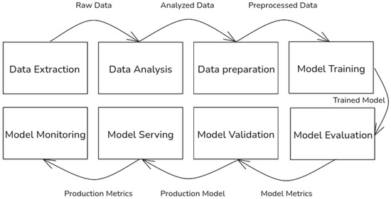 The amount of automation of these steps dictates the level of maturity of the ML system (https://cloud.google.com/architecture/mlops-continuous-delivery-and-automation-pipelines-in-machine-learning (accessed on 30 June 2025)). When it comes to impact of privacy-preserving machine learning inference on these steps, especially the final two steps, model serving and model monitoring are most affected.