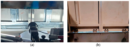 By inspecting elevator shafts in dozens of residential buildings, shopping malls, and schools across Dalian, we collected 440 in situ images of the bolt 1 class (Figure 15a). An additional 200 bolt 2 images were captured on the simulated platform (Figure 15b). To improve model generalization, a Mosaic augmentation strategy was applied, expanding the dataset to 1344 images. The data were split into training, validation, and test sets at a 7:2:1 ratio, yielding 1137, 224, and 112 images, respectively. With LabelImg, 648 fasteners were annotated and assigned to two categories. Semantic segmentation masks were produced with Labelme.