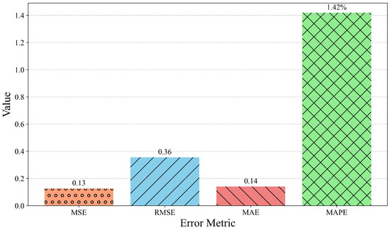 To quantitatively evaluate the accuracy of the simulation model, Figure 10 illustrates four commonly used error metrics: the Mean Squared Error (MSE), the Root Mean Squared Error (RMSE), the Mean Absolute Error (MAE), and the Mean Absolute Percentage Error (MAPE). These are defined as follows: