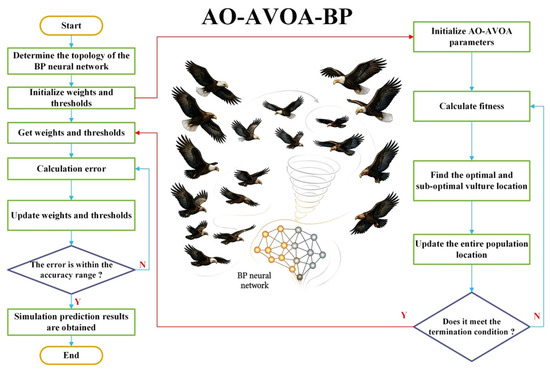 In summary, the proposed algorithm achieves notable improvements in three key aspects: solution quality, robustness, and convergence speed. The overall framework of the improved AO-AVOA dual-modal intelligent optimization algorithm is illustrated in Figure 6.