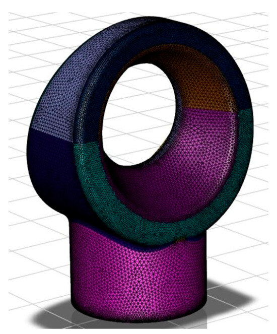 The coupled fluid domain included both the last-stage blades and the exhaust hood. Given the large size of the 1:1 scale model and its complex geometric structure, using structured grids alone is not conducive to grid division; however, using unstructured grids alone requires additional computer memory for storage. Therefore, this study used Turbo Grid R2022 to divide structured grids for the last-stage blade cascade. As a professional blade grid division software, Turbo Grid can divide a single passage and generate a full-circle channel by copying topology, significantly simplifying the blade grid division process. The unstructured grids had geometric adaptability; therefore, Fluent R2022 was used to divide unstructured grids for the exhaust hood. To ensure more accurate computational results, the model underwent grid independence verification. After setting the inlet flow and outlet pressure, a relatively coarse grid division calculation was first conducted, gradually refining the grid. Inlet pressure distribution was used for comparison; when the grid count exceeded 9 million, the numerical result error was within 5%, indicating insensitivity to the grid count at this point. The last-stage blades, shroud, exhaust hood inlet and outlet, reinforcing ribs, and some small walls were refined at a total grid count of approximately 11 million. The grid of the computational domain of the exhaust hood before and after structural optimization is shown in Figure 3.
