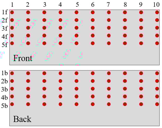 The thickness of the thin-walled workpiece is obtained by measuring the machined thin-walled workpiece with a coordinate measuring machine (CMM), and the amount of deformation can be further calculated, as shown in Figure 15. This CMM is Hexagon’s EXPLORER 07.10.07, which uses a standard ball to calibrate the touch-trigger probe. The CMM’s uncertainty is 3 μm. The CMM measured 10 points along the -direction and 5 points along the -direction of the thin-walled workpiece, as shown in Figure 16. The measurement results of the thin-walled workpiece deformation along the -direction are shown in Figure 17a, and those along the -direction are shown in Figure 17b. It can be seen that along the -direction, the actual measured deformation of thin-walled workpieces decreases and then increases; along the -direction, the actual measured deformation of thin-walled workpieces increases and then decreases, which is consistent with the trend of the simulated deformation of thin-walled workpieces.