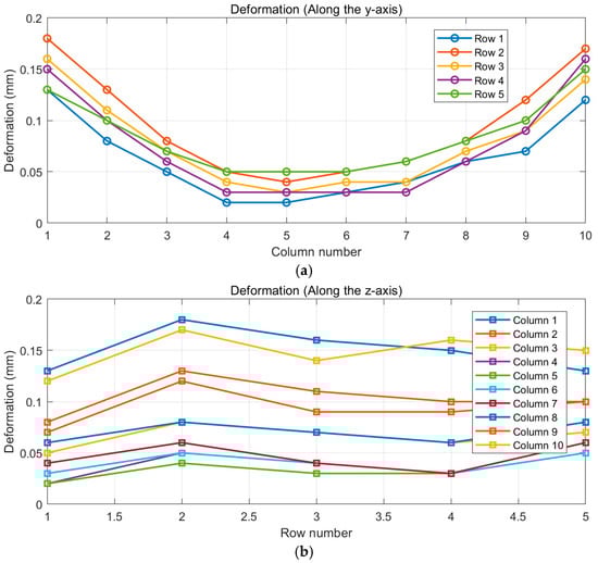 Actual measured deformation values. (a) Arranged along the -axis; (b) Arranged along the -axis.