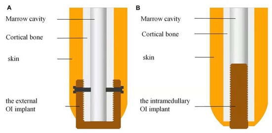 - Sun, Y.; Xu, J.; Lv, S.; Xu, Z.; Li, L.; Li, Y.; Li, Y. Extramedullary Osseointegration—A Novel Design of Percutaneous Osseointegration Prosthesis for Amputees. Front. Bioeng. Biotechnol. 2022, 10, 81128. [Google Scholar] [CrossRef]