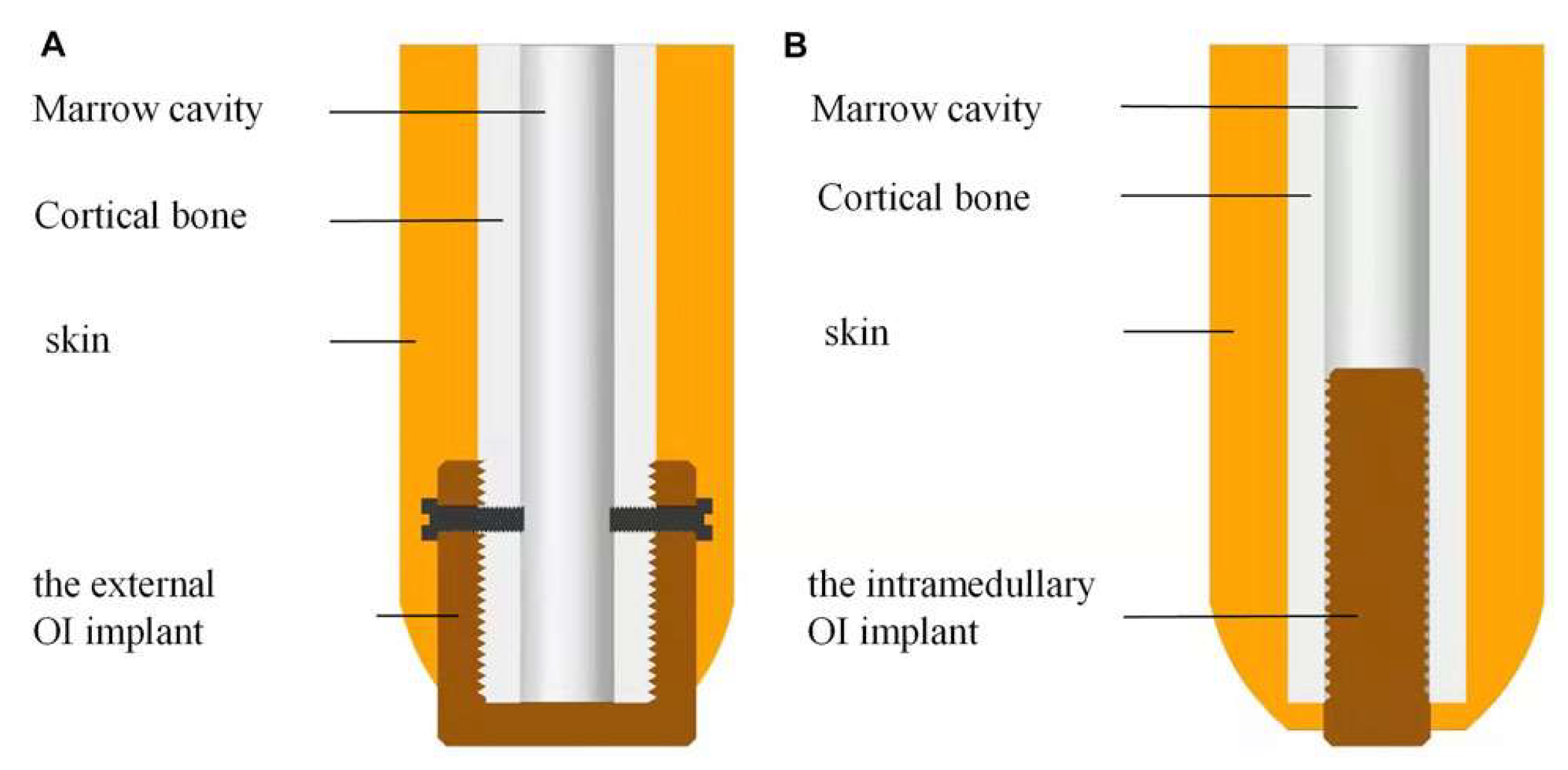 Figure 3), which fix the prosthesis to the external surface of the bone, may offer lower risks of bone resorption and infection, increased stability, and enhanced bone regeneration compared to their intramedullary counterparts [