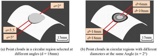 Point cloud selection in the circular area for (a) different angles and (b) same angle.