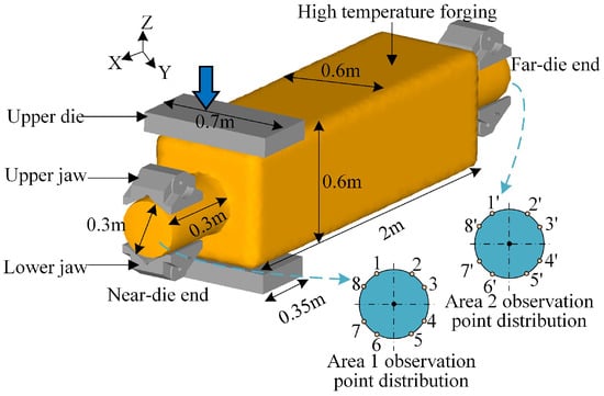 Finite Element Model of Bilateral Forging and Distribution of Observation Points.
