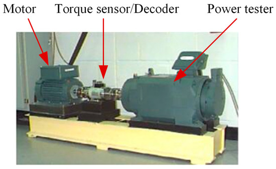 The experimental data were obtained from the Case Western Reserve University (CWRU) rolling bearing dataset, which is a widely used dataset. The experimental platform, illustrated in Figure 7 below, comprises a 2 hp (1.5 kW) electric motor (positioned on the left), a torque transducer/translator (center), a power meter (right), and electronic controllers (not depicted in the figure). The motor has four operating states: 0 HP, 1 HP, 2 HP, and 3 HP; 1 HP = 0.7457 kW. The function of the test bearing is to provide support for the motor shaft. The test bearings provide support for the motor shaft and are categorized into drive-side bearings and fan-side bearings. It has been determined that these bearings sustain damage at a specific point during the EDM machining process.