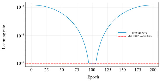 Values ηmin and ηmax represent the minimum and maximum learning rates, respectively, i.e., the boundary conditions. “T” denotes the iteration count and “Φ” corresponds to the golden ratio of 1.618, which is used for dynamically adjusting the cycle phase. λ is the exponential decay factor that controls the long-term decay of the learning rate. t indicates the current training step count. GCOS strikes a balance between convergence speed and stability by employing golden ratio phase modulation and dynamic cycle restart. This makes it particularly well suited to large-scale deep learning tasks. Its mathematical design combines the smoothness of cosine annealing with the advantages of periodic restarting associated with SGDR, while optimizing long-term training performance through an exponential decay term.