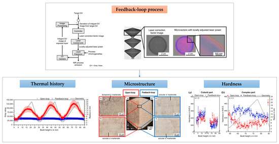 - Nahr, F.; Novotny, T.; Kunz, D.; Kleinhans, U.; Chechik, L.; Bartels, D.; Schmidt, M. Advanced Process Control in Laser-Based Powder Bed Fusion–Smart Fusion Feedback-Loop Control as a Path to Uniform Properties for Complex Structures? J. Mater. Res. Technol. 2025, 34, 604–618. [Google Scholar] [CrossRef]