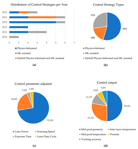 As can be observed, the last five years have shown a steady increase in academic interest for the development of robust monitoring and control methodologies for the LPBF process. Notably, the number of relevant publications in 2024 nearly quadrupled compared to 2020. Moreover, by the middle of 2025, seven articles have already been published on these topics, reflecting sustained interest in this research area.
