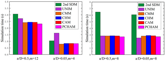 Comparisons of calculation times required by the 2nd SDM, UNIM, CMM, CHM, CAM and PCHAM.