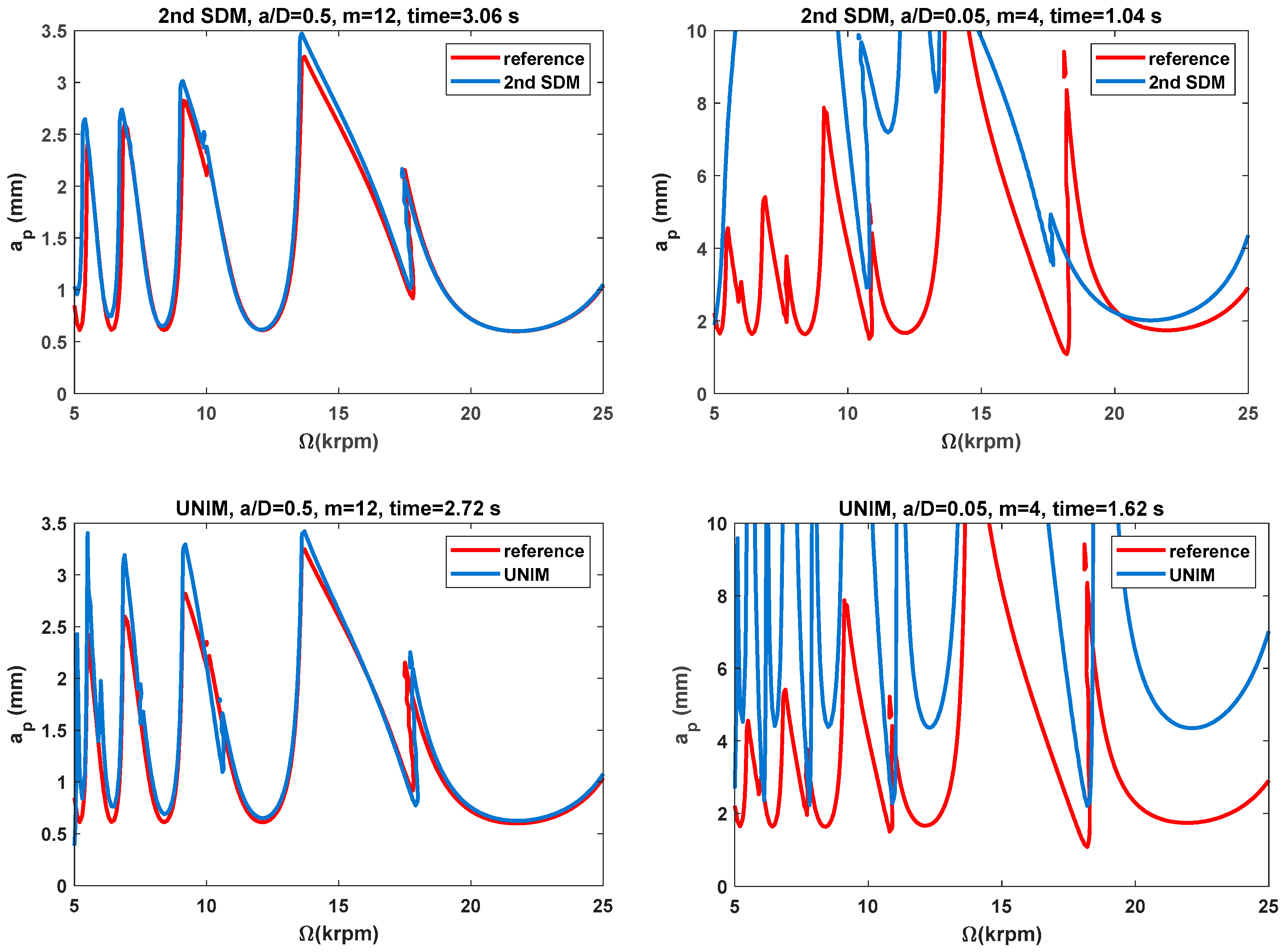 - Yan, Z.; Wang, X.; Liu, Z.; Wang, D.; Jiao, L.; Ji, Y. Third-order updated full-discretization method for milling stability prediction. Int. J. Adv. Manuf. Technol. 2017, 92, 2299–2309. [Google Scholar] [CrossRef]