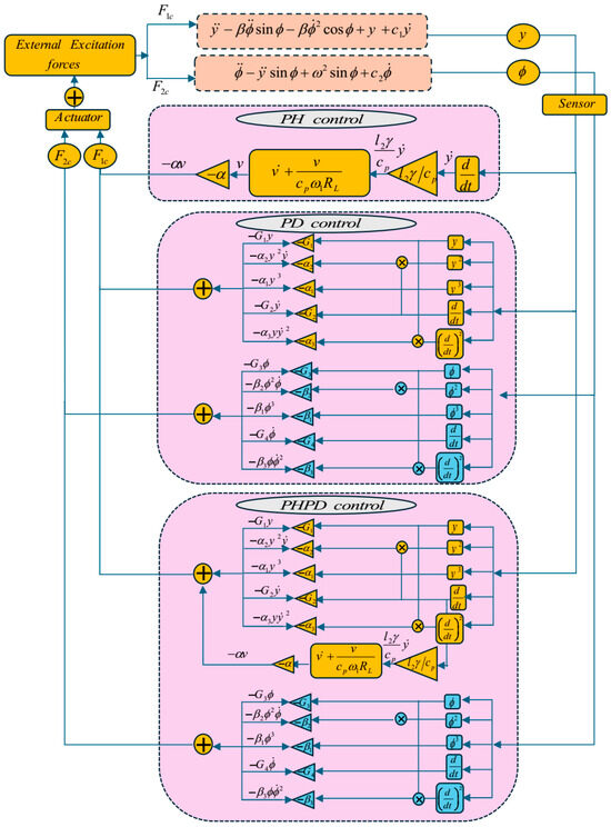 The primary PHPD-controlled structure (a) First system amplitude () (b) Second system amplitude () (c) Voltage amplitude ().