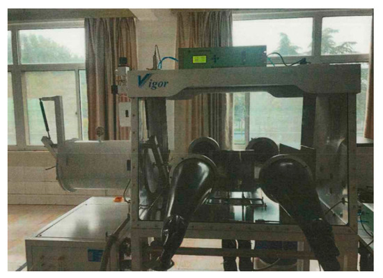 Using the “replacement-purification and air distribution method,” a test chamber (Figure 3) with ultra-low dew point and ultra-low carbon dioxide content was constructed for the cryogenic wind tunnel’s drying hall to measure the impact of ultra-low air dew point on water vapor desublimation on the airfoil surface under cryogenic conditions (such as 110 K). The overall dimensions of the test chamber are 1200 mm × 1000 mm × 900 mm, where the width along the spanwise direction of the airfoil is 1000 mm. The test chamber’s main body is an airtight chamber that uses double-layer sealing technology and has excellent airtightness and moisture-blocking capabilities. Immersion cooling with liquid nitrogen is typically needed to get the model down to the test temperature without causing frost in the test chamber. When this method is used, the model’s temperature becomes unmanageable, and the test observations may be impacted by the high volume of liquid nitrogen present in the test chamber. The study used the “integrated environment creation-model freezing test chamber” method to address the aforementioned issues.