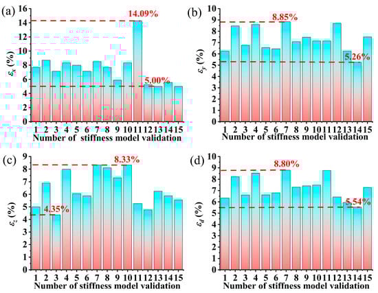 The results of relative errors of end deformation for stiffness model validation are shown in Figure 6.