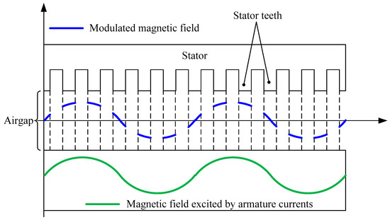 Schematic diagram: Armature magnetic field modulated by stator teeth.
