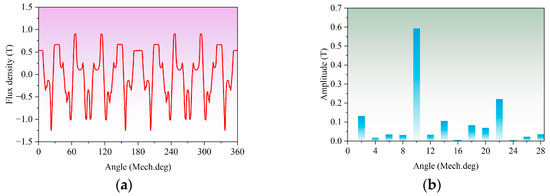 Airgap flux density excited by 3-phase armature currents: (a) waveform; (b) FFT spectrum.