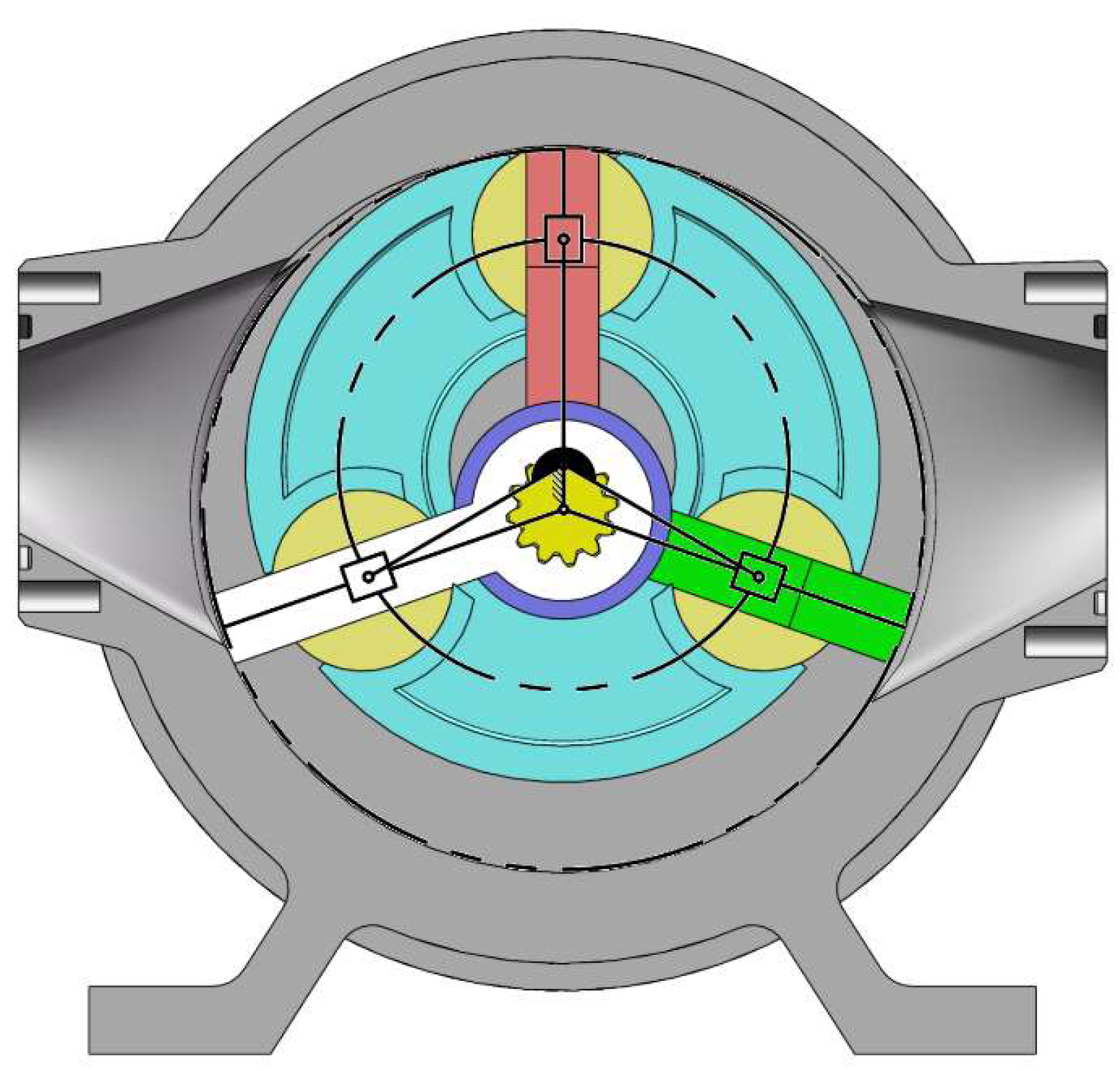 Within the BRVP, the three blades share a common, fixed rotational center. This configuration ensures a constant distance between each blade tip and its rotational center, equivalent to the blade length, throughout the entire operational cycle. This relative motion among components enables the equivalent of “reciprocating motion” in vane pumps (typically achieved through centrifugal forces and hydraulic pressure). This kinematic design significantly enhances mechanism stability and operational reliability while eliminating the requirement for dynamic sealing elements.