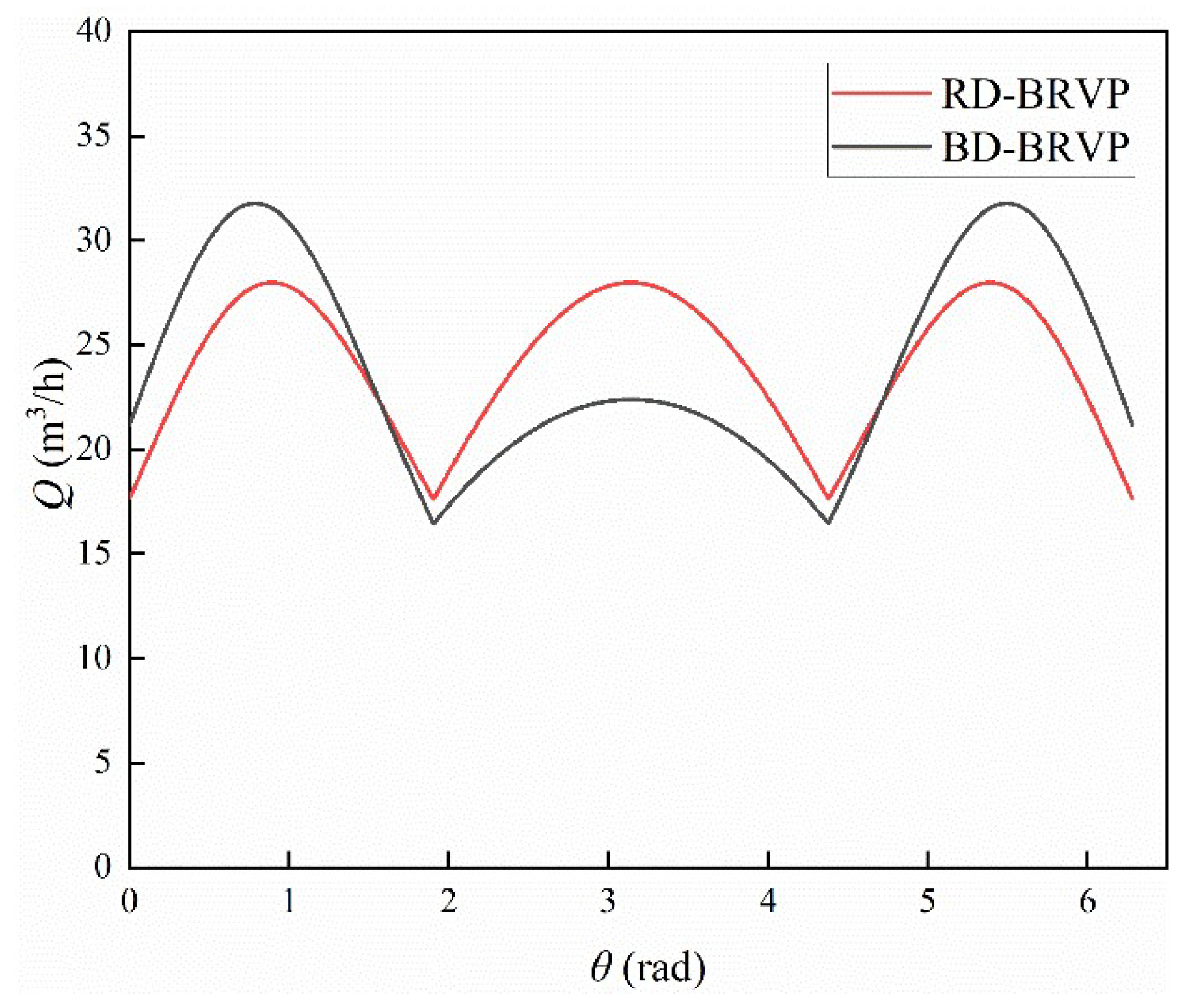 Comparison of instantaneous flow curves of the BRVP.
